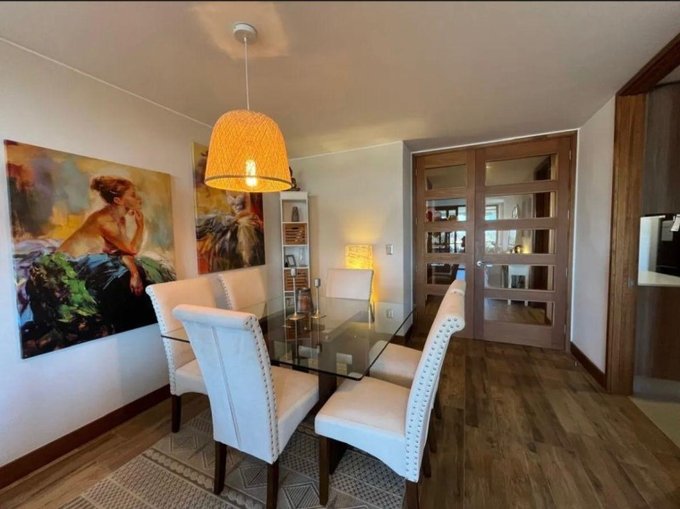- Interior: Balcón, cocina equipada, comedor, barra de desayuno, suite principal con vestidor y closets.