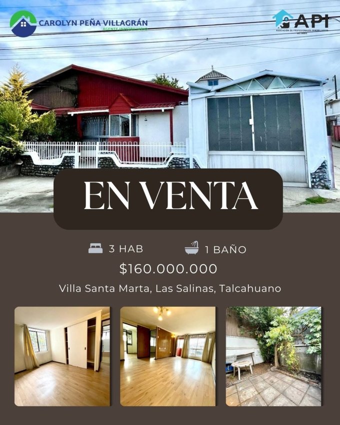 Descubre una excelente oportunidad en Talcahuano! Esta acogedora casa esquina, valorada en $160,000,000 pesos se encuentra situada en la tranquila zona de Las Salinas, específicamente Villa Santa Marta. Esta propiedad es perfecta para quienes buscan un hogar cómodo y funcional. La comuna de Talcahuano es conocida por su vibrante actividad portuaria y su rica historia naval. Además, cuenta con diversas áreas verdes y una infraestructura que facilita la vida diaria de sus habitantes.
