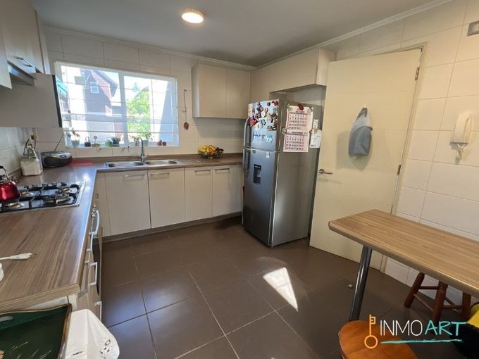 - Amplia Cocina con mesa desayunador, muebles de base y muro, equipada con horno, encimera, microonda y campana.