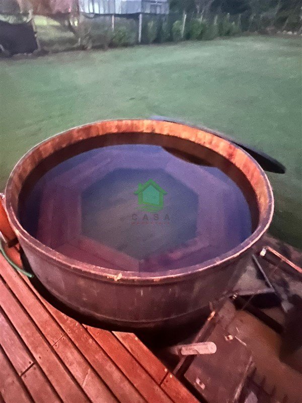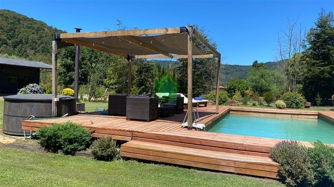 Además de todo eso cuenta con quincho completamente independiente y equipado con un dormitorio para 6 u 8 personas y baño completo, piscina con terraza, pérgola y tinaja de agua caliente para disfrutarla durante todo el año.