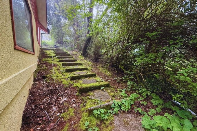 Patio con bosque nativo (arrayanes, coigües y más)