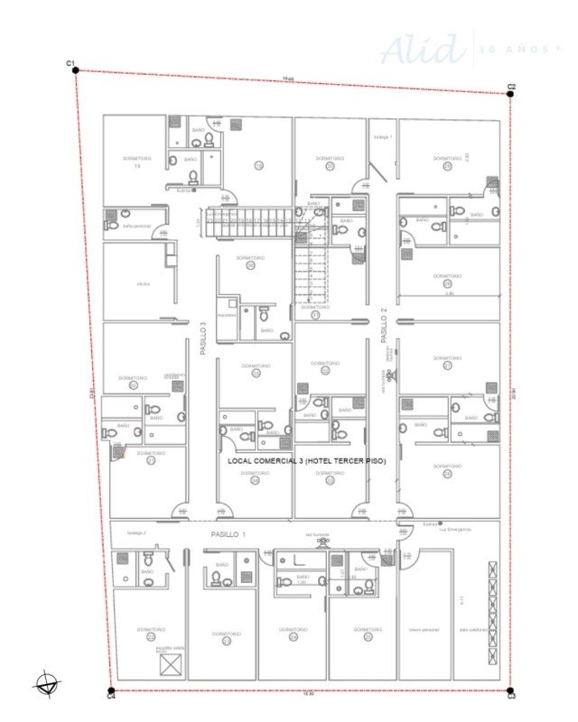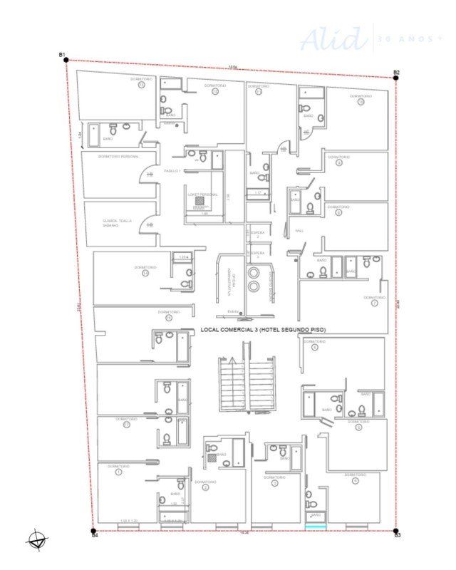 En segundo y tercer piso se encuentra el hotel con 40 habitaciones amobladas, todas con baño privado, más 2 baños (42 baños en total), además de dependencias de servicio que permiten una operación estructurada y funcional, como oficinas, bodegas, privados, despensas, repostero, cocina, lockers, dormitorios y baños para el personal.