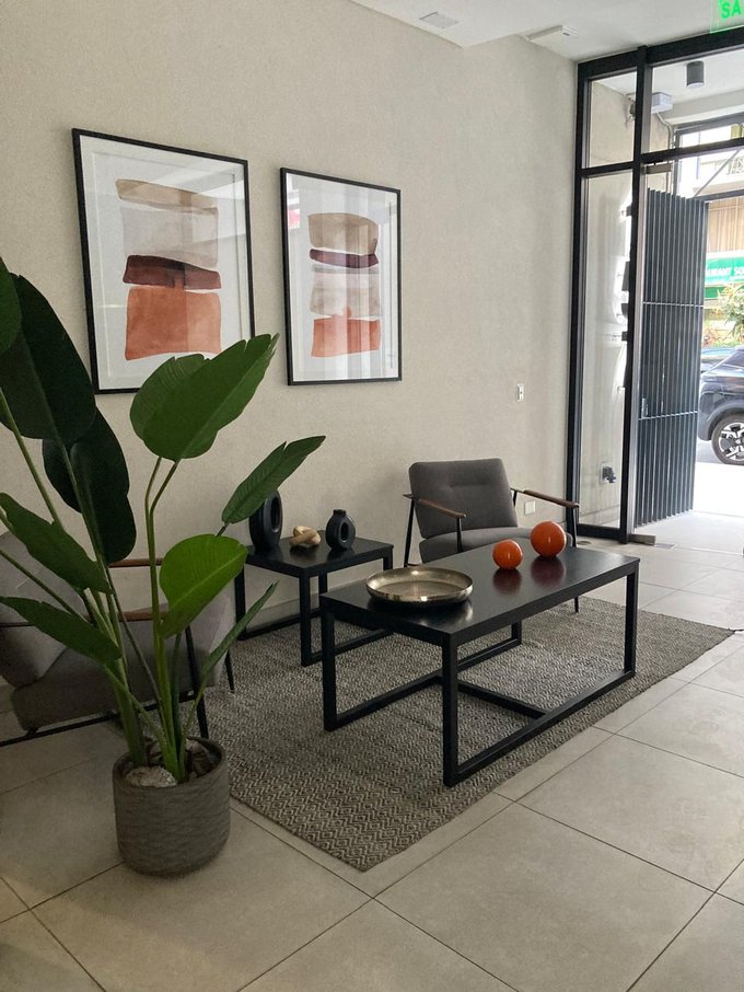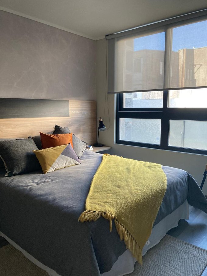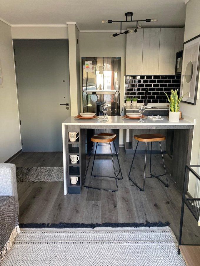 La propiedad destaca por sus terminaciones de alto estándar, incorporando dormitorio con piso SPC flotante repelente al agua, ventanas termopanel con marco PVC antracita en todos los recintos, y cocina integrada full eléctrica, equipada con cubierta de piedra acrílica impermeable y antibacterial, campana retráctil, horno eléctrico y encimera vitrocerámica.
