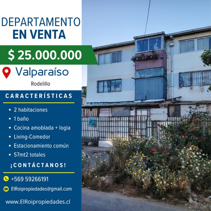 En venta, acogedor departamento ubicado en el tranquilo sector de Rodelillo, Valparaíso, ideal para quienes buscan comodidad y buena conectividad.
