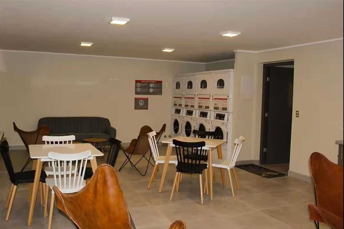 Lavandería y dispensadores de agua filtrada.