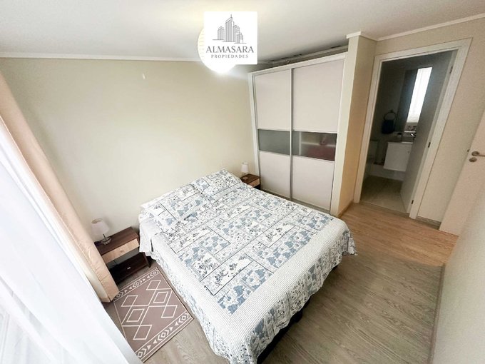 Inmueble impecable, muy bien mantenido con aspecto nuevo. 2 Dormitorios (principal en suite), baño de visitas, amplia cocina, living con orientación poniente agradable vista hacia áreas verdes del edificio.