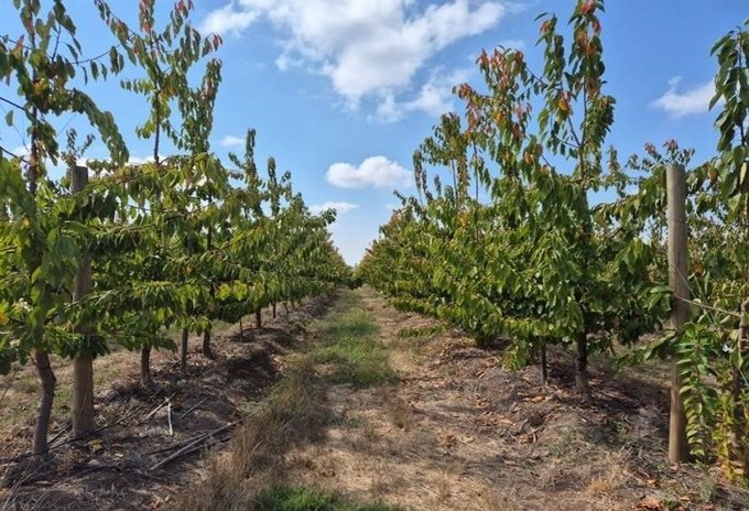 Cultivos presentes: huerto de cerezos con variedades Kordia, Skeena, Lapins y Santina sobre distintos portainjertos.