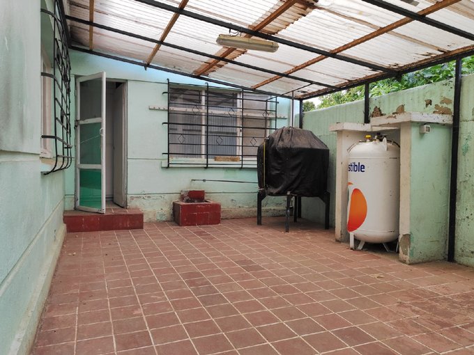 Patio trasero techado, perfecto para reuniones familiares.