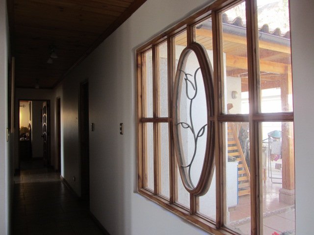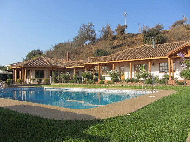 Casa estilo Patronal, posee un amplio living y comedor con preciosas vigas a la vista, además de piso vitrificado, todo en maderas nobles, cuenta con bosca para su calefacción. Posee pasillo distribuidor para acceder a cocina amplia y amoblada con logia, un baño completo de visita, una habitación matrimonial muy amplia con walk in closet y baño en suite, dos dormitorios amplios con capacidad de cama King, además de un tercer baño completo. En exterior se ubica un quincho cerrado amplio el que posee además una habitación grande con walk in closet y baño en suite. La propiedad cuenta con quincho abierto que incluye baño y una piscina amplia cuyas medidas son 10x6 aproximado, rodeada de jardines, áreas verdes, árboles frutales como ciruelo, durazno, cerezo, pomelo, naranjo, mandarina, limón, membrillo, parrones, entre otros. Ubicada en un sector privilegiado y de muy buen entorno, a pasos de la principal conexión vial de Limache, Santiago y Viña del Mar, cercana a Colegio Altomonte. Plena naturaleza.