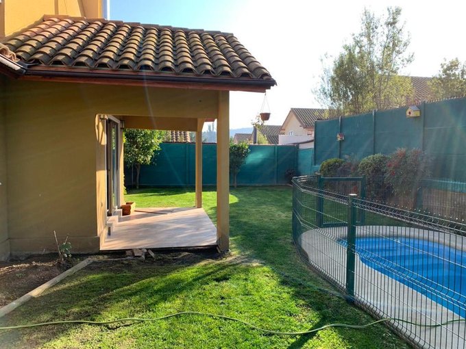 Primer piso cuenta con Living comedor, con piso de porcelanato. Dormitorio principal con piso porcelanato, con closet de gran dimensión y baño en suite totalmente equipado. Pequeña bodega bajo escala, además de baño de visitas. Cuenta además con cocina totalmente amoblada y equipada. Toda la propiedad en su primer piso cuenta con piso de porcelanato y calefacción. En segundo piso, cuenta con baño y dos dormitorios ambos alfombrados, y con closet de gran tamaño. En pasillo dos closet completos y sala de estar de cómodos espacios. En el exterior, antejardín, reja con portón automático, estacionamiento. En el patio interior la propiedad cuenta con piscina de 5, x 2,5 aproximadamente. Ventanales para ingreso a la propiedad. Cómoda logia techada, pasto y riego automático. Propiedad cercana a canchas de pádel, colegios, comercio y ubicada en sector residencial de peñablanca.