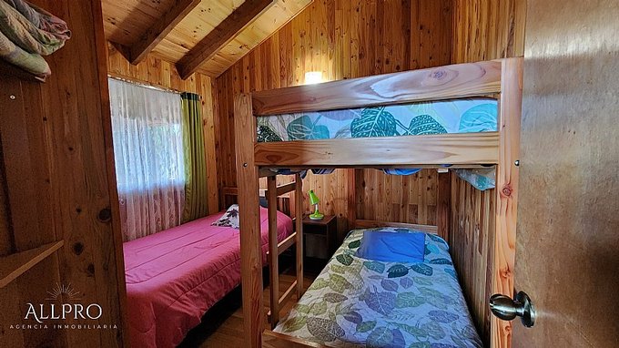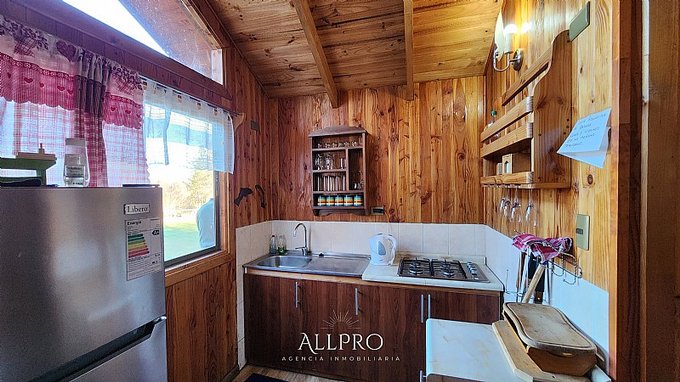- Cabaña principal de 48 m con living comedor, cocina, baño y 2 dormitorios