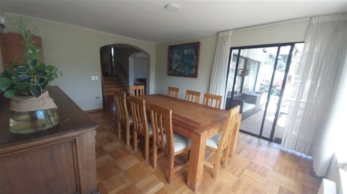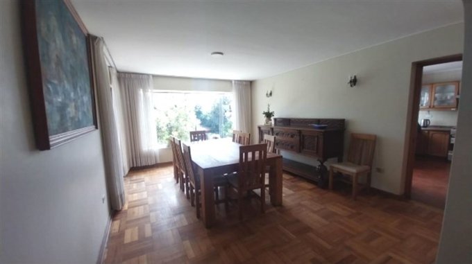 Antejardín y estacionamiento para 4 vehículos, jardín posterior con barbecue y quincho con baño completo, más un gran comedor cerrado.