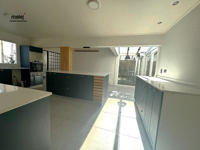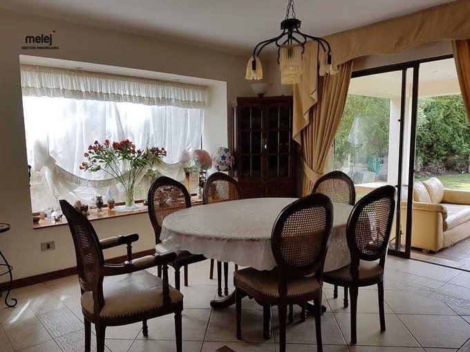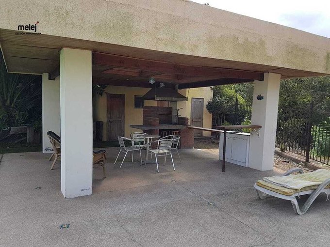 Dos terrazas, gran quincho techado, piscina con luz. Bodega y baño.