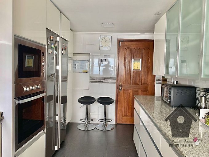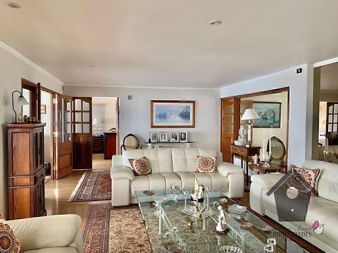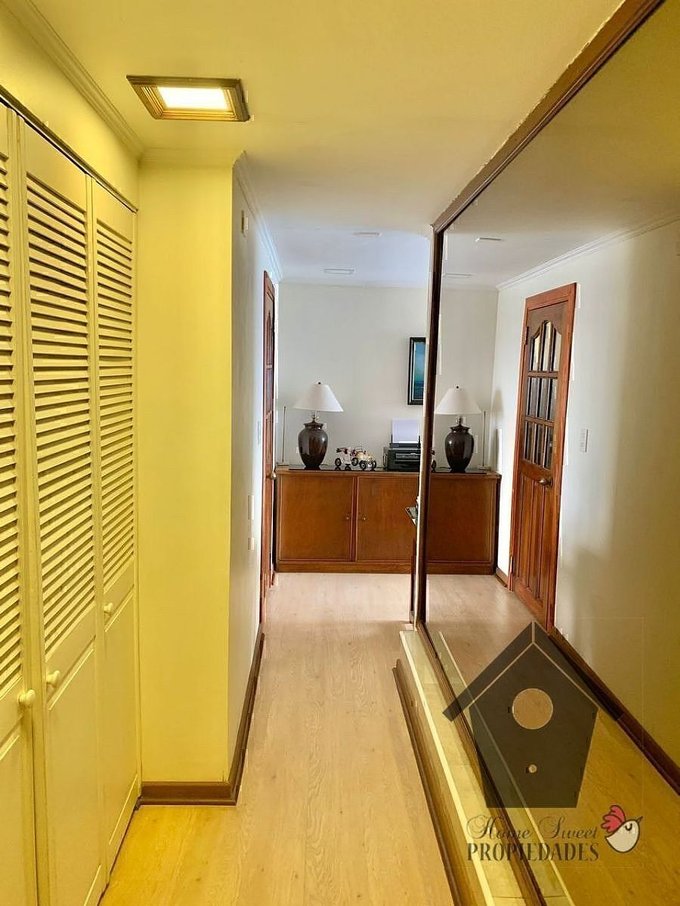 El departamento principal tiene, Cerámica / Porcelanato en hall de entrada y pasillos, Piso flotante en estar, comedor y dormitorios. Cerámica / Porcelanato en baños y cocina. Cubierta de granito en la cocina. Chimenea en el estar. Estacionamiento Techado, montacargas desde el Estacionamiento (nivel calle) al departamento principal.