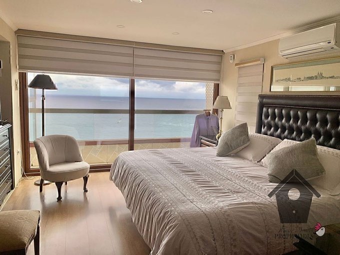 Departamento Principal, con 140 metros cuadrados, con vista al mar desde todas las áreas, tiene un hall de distribución del que se accede a las áreas comunes, a los dos dormitorios y las áreas de servicio. Las áreas comunes incluyen un amplio estar principal con acceso a un comedor y a dos terrazas cerradas. Los dormitorios se encuentran separados por las áreas comunes y ambos cuentan con baño privado. Este piso cuenta con un Montacargas desde el estacionamiento doble que se encuentra a nivel calle.