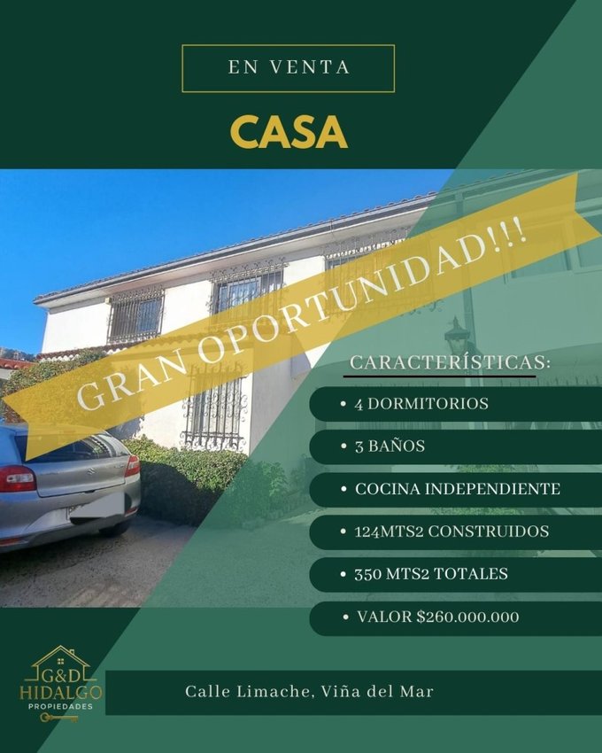 Una oportunidad real para adquirir una amplia casa con gran terreno en un sector consolidado de Viña del Mar, ideal tanto para familias que buscan espacio y tranquilidad, como para inversionistas que proyectan plusvalía y potencial de desarrollo.