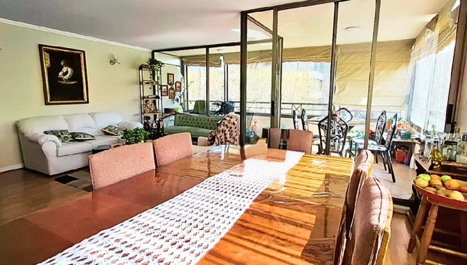 Living y comedor con salida a terraza cerrada con ventanales corredizos (orientación norponiente, muy luminoso)