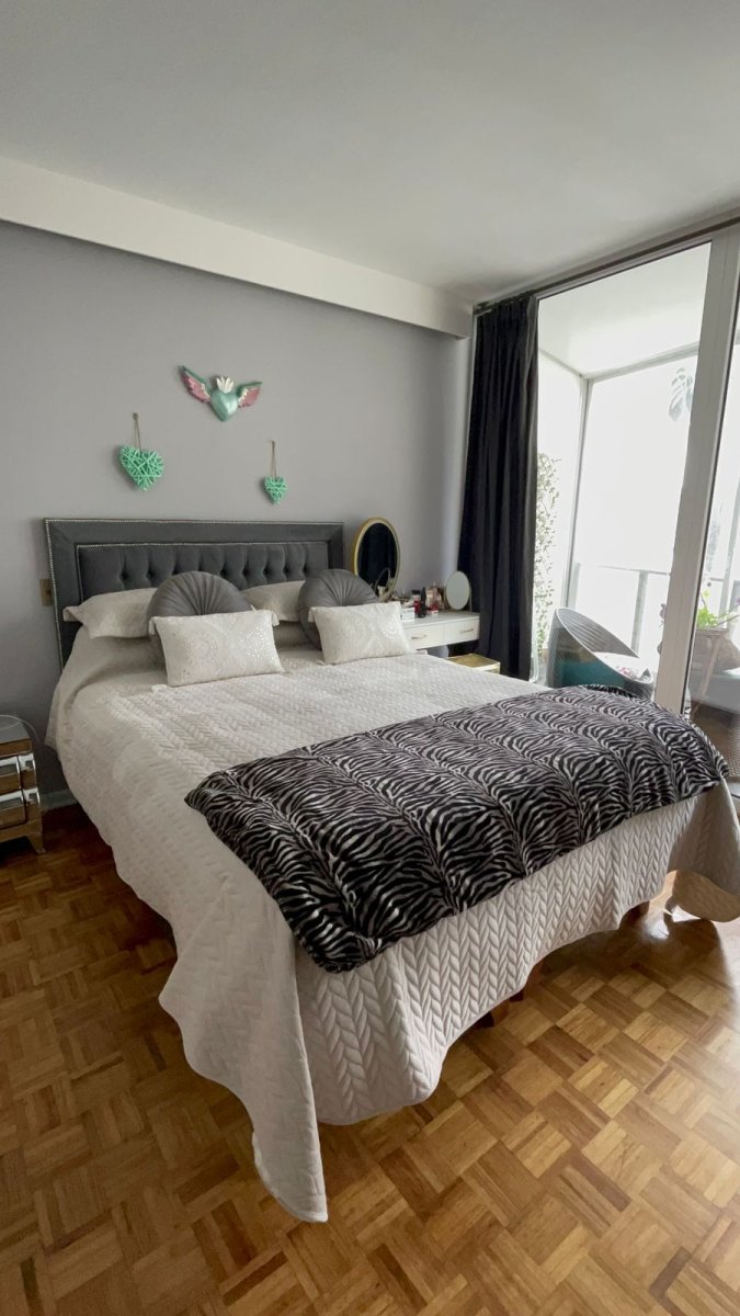 El departamento está totalmente remodelado y tiene vista despejada asegurada con dos terrazas independientes. Cuenta con 3 dormitorios y tres baños, dormitorio principal en suite y con salida a terraza. Living comedor amplio con desnivel entre ambos ambientes para maximizar la vista y salida a una de las terrazas. Cocina amoblada e integrada, con instalación para lavadora y equipada con encimera a gas, horno, campana y también se incluyen lavadora y refrigerador que se ven en las fotografías. Piso parquet vitrificado en zonas secas y cerámico en zonas húmedas.