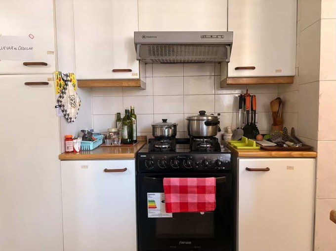 -Cocina cerrada, espaciosa, con muebles de almacenamiento integrados y acceso directo a logia.