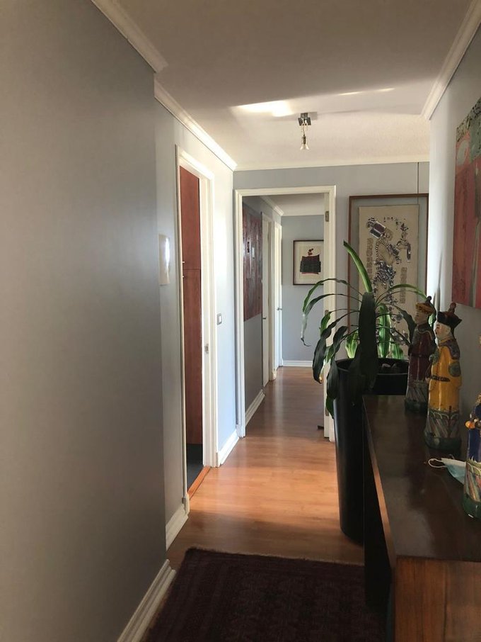 Hall de entrada, living comedor juntos con salida a terraza, cocina tradicional, 4 dormitorios y 3 baños, 2 dormitorios en suite, principal con salida a terraza cerrada con cierre plegables sin perfiles.