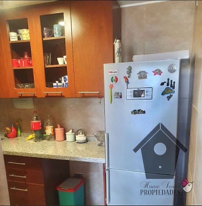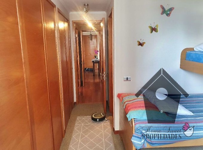 Piso fotolaminado en estar y dormitorios alfombrados, baños y cocina con cerámica en piso y muros. Terraza cerrada habitable. Puertas enchapadas y barnizadas. Cubierta de granito en la cocina y mármol en los baños. Cocina amoblada y equipada con encimera, horno empotrado y campana. Uno de los Baños con ventana hacia la terraza. Grandes closet en ambos dormitorios. Calefacción y agua caliente con caldera propia fuera del depto. Bodega en el mismo nivel que el departamento.