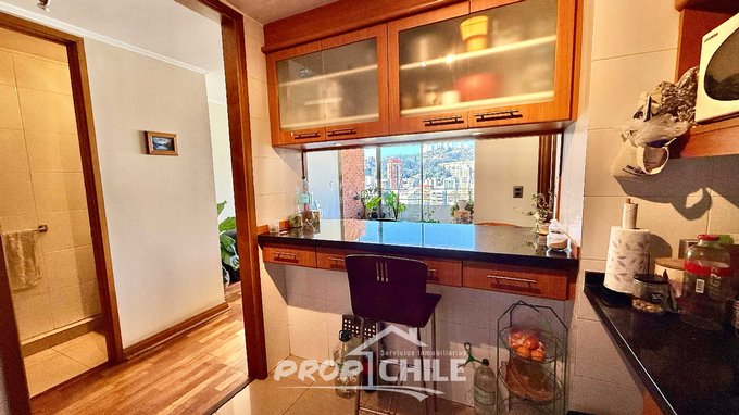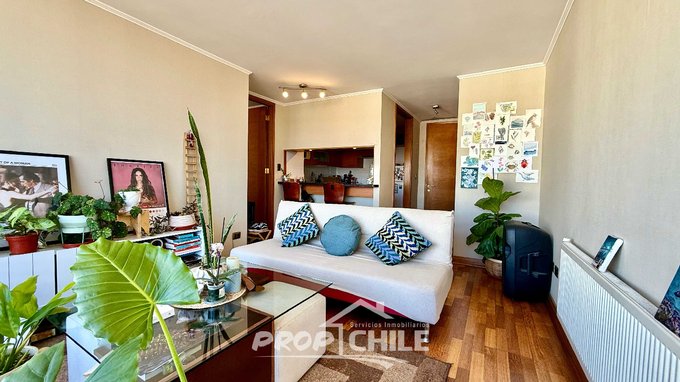 Con 55 m construidos, este inmueble ofrece una distribución funcional: 1 dormitorio, 1 baño, livingcomedor, cocina americana, 1 estudio u oficina, hermosos pisos de madera, alarma de seguridad y caja fuerte incorporada. Destaca su amplio balcón con espectacular vista elevada de la ciudad. Además, incluye estacionamiento y bodega, sumando valor y practicidad.