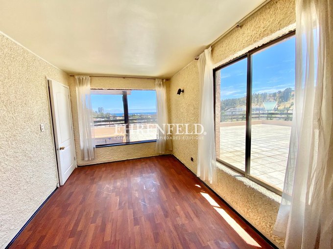 Gran departamento dúplex, vista al mar, ubicado en tradicional barrio de Jardín del Mar, Reñaca, Viña del Mar. A pasos de Colegio Mackay, comercio en general y transporte público. Cercano a playa Reñaca y destinos turísticos de la zona.