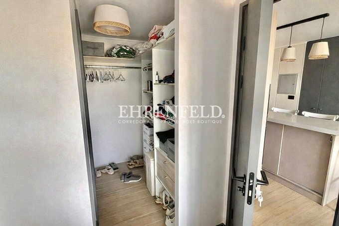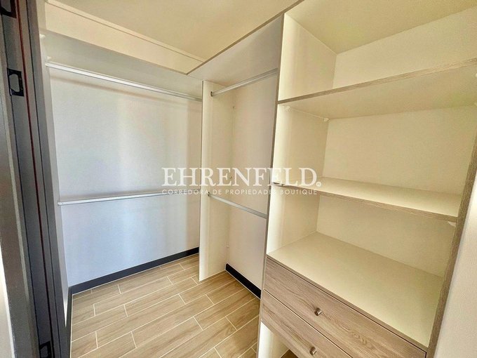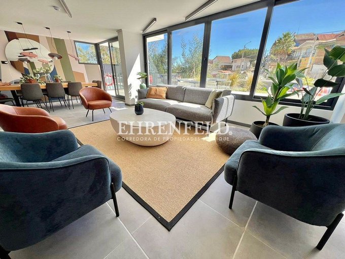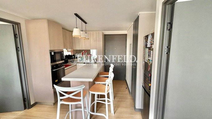 Living equipado con refrigerador, lavadora, microondas y encimera. Cortinas roller en todo el departamento (blackout + screen). Iluminación con exclusivas lámparas Eglo de estilo artesanal.