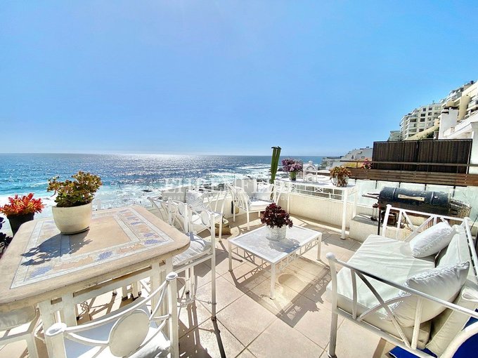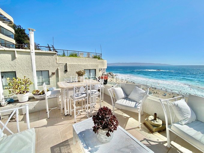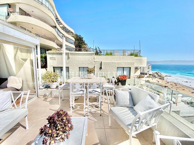 Espectacular departamento en primera línea, hermosa vista al mar, frente a la playa de Reñaca. Cercano a Bancos, supermercados, transporte y comercio en general.