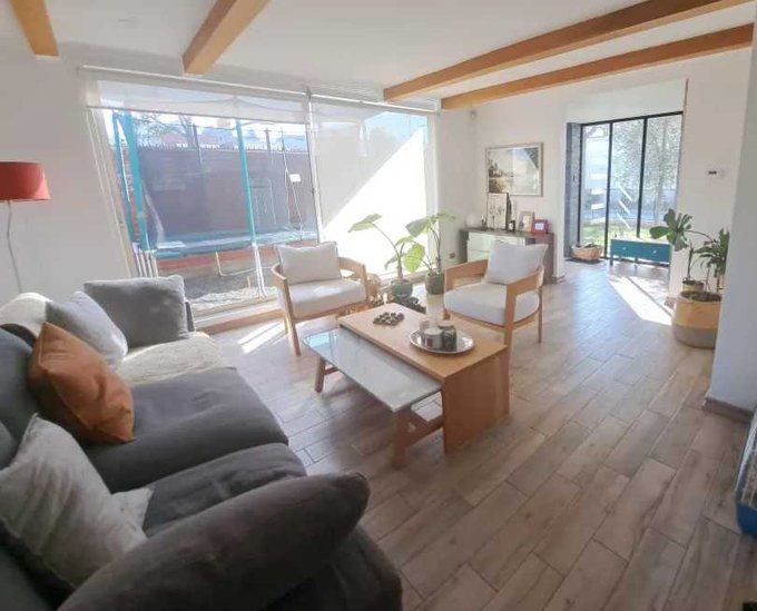 Te Tiene piscina temperada, quincho muy rico frente a la cocina, muy cómodo para disfrutar con amigos y familia.