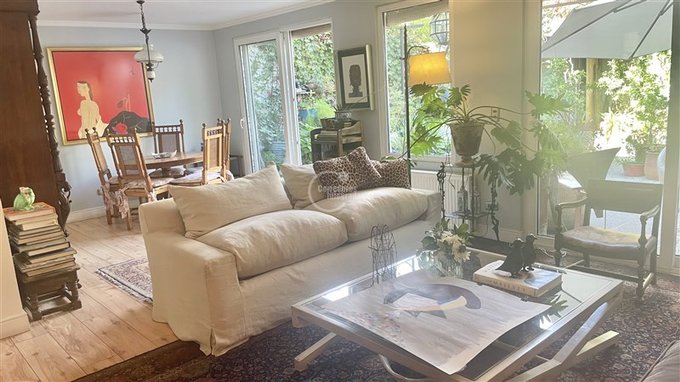 Primer piso, hall de entrada, amplios recibos con fino piso de madera, salida a jardin interior muy acogedor, gran cocina y loggia.