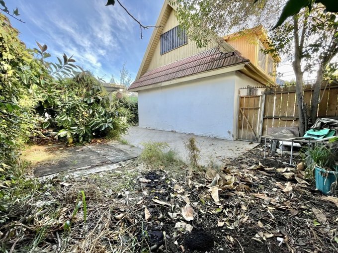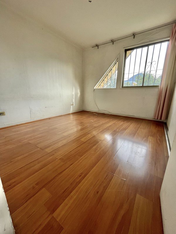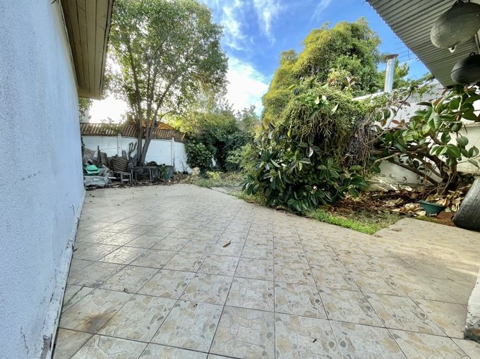 Exteriores y otros: Antejardín, estacionamiento para 3 vehículos, patio trasero con casa pequeña para uso de bodega o de servicio. Ventanas protegidas con rejas. Piso parquet.