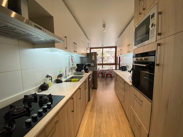 Tiene140 m2 más 2 terrazas con cierre de cristal,todo termopanel, piso porcelanato, cubiertas de cuarzo en la cocina.
