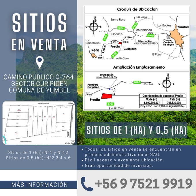 Se venden 6 lotes para inversión ubicados en la Comuna de Yumbel que pertenecen a un retazo de terreno que forma parte de la hijuela N°1 del predio denominado Curipiden, estos 6 lotes y todas sus características se mencionan a continuación: